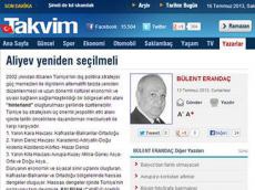 Turkish Takvim newspaper has issued an article titled “Ilham Aliyev must be reelected” by Bulent Erandac.