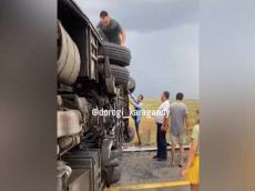A passenger bus capsized on the Karaganda-Astana highway injuring a male passenger in his 70s, Azernews reports, citing Kazinform.
