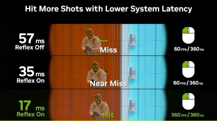 Reflex technology is designed to improve responsive controls by eliminating buffering between the CPU and graphics card. It is enabled in one click in the game settings. This can be very useful in competitive gaming. For example, a player in Counter-Strike 2 gets easier control and aiming, which significantly increases his chances of winning. Reflex is available in the most popular competitive games, there are about 80 games with support for this technology.