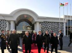A guard of honor was lined up for the Prime Minister at the Heydar Aliyev International