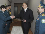 The President was met here by Commander of Frontier Troops, Chief of the State Frontier Service Elchin Guliyev.
