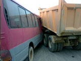 A truck and a passenger bus collided on the Baku-Sumgait highway in Azerbaijan at 03:00 p.m. today, eyewitnesses said.