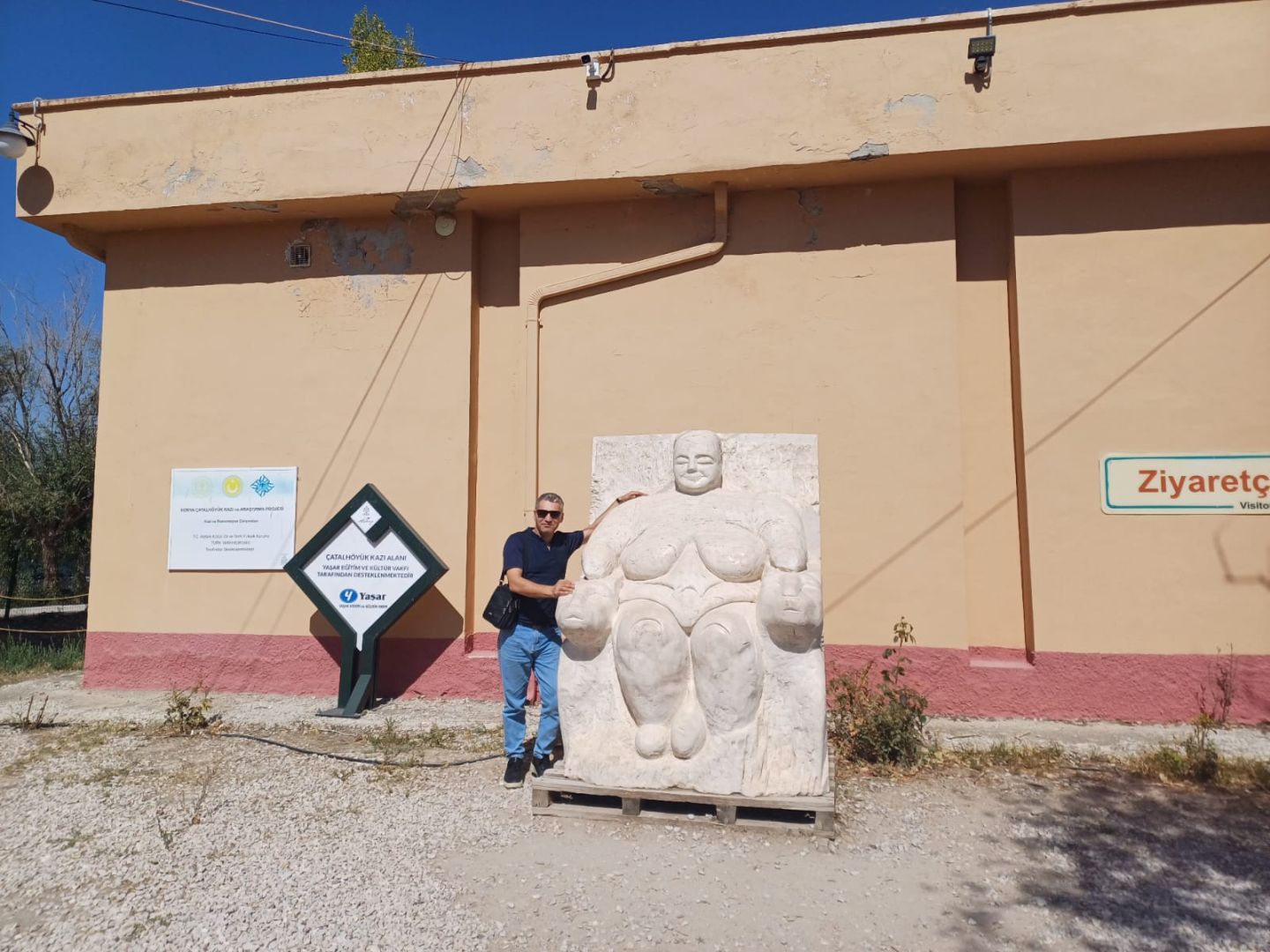 We are in Konya - the city that hides the secrets of history under its fertile soil. Our journey continues... This city, distinguished by its antiquity and preserving all cultures as a treasure, is not limited to the Seljuk history. Called Kawana in the Hittite period, the city was also called Kaoania in the Phrygian and Luwian periods. However, on this trip, we visited Çatalhöyük a settlement of Çumra district, which is about 52 km from the center of Konya city. Çatalhöyük is a very large Neolithic and Chalcolithic Age settlement in Central Anatolia, which was inhabited about the 9th millennium BC. The name Çatalhöyük also stands for two independent words – çatal which is fork and höyük is a living place. It is because the town is shaped like a fork in a bird’s-eye view. It consists of two settlements side by side in the east and west directions. The settlement in the east, called Çatalhöyük (East), was inhabited in the Neolithic Age, and the settlement in the west, called Çatalhöyük (West), was inhabited in the Chalcolithic Age. Both of the towns within Çatalhöyük were discovered by Western archeologists James Mellart, David French, and his colleagues in 1958. It is located in a wheat field overlooking the Konya Plain, approximately 136 kilometers away from Hasanda??, 11 km north of Çumra district. The place we visited was then renovated and all the conditions for visitors were quite convenient. Built with wood the building took us along a corridor with cells each one of which had presentation boards equipped with some cutting-edge technology. Each board speaks to you upon your request by pushing a button for specific information.