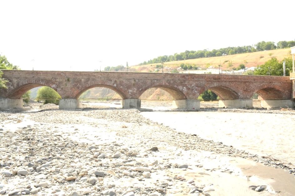 In the 19th century, there were seven bridges in Guba, but only the Arch Bridge has been preserved until now. At first, a wooden bridge was built over Gudyalchay on pillars in 1851. However, this bridge has not had a long lifetime. For this reason, the construction of the new bridge started in 1894. The length of the bridge is 160, the width is 7.6, and the height from the foundation is 7.39 metres. The Arch Bridge is protected by the state as a historical and architectural monument.