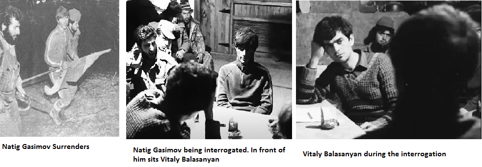 Based on this photo, British journalists conducted an investigation to shed light on his fate. They found new photos of Natig shot by Sarzini during his interrogation and interviewed by the Armenian General Vitali Balasanyan. British Journalists presented the photo of the interrogation to Balasanyan, and the general said that he did not remember. Later, journalists interviewed the Armenian soldiers who partook in the church fight and the soldiers immediately remembered the person who sat in front of Natig and interrogated him. That person was Vitali Balasanyan. The soldiers confessed that after Sarzini's departure, Natig Gasimov was dismembered in accordance with Vitali Balasanyan’s order, and his body members were burned to ash. After that, British journalists called Vitaly for a new interview but he refused.