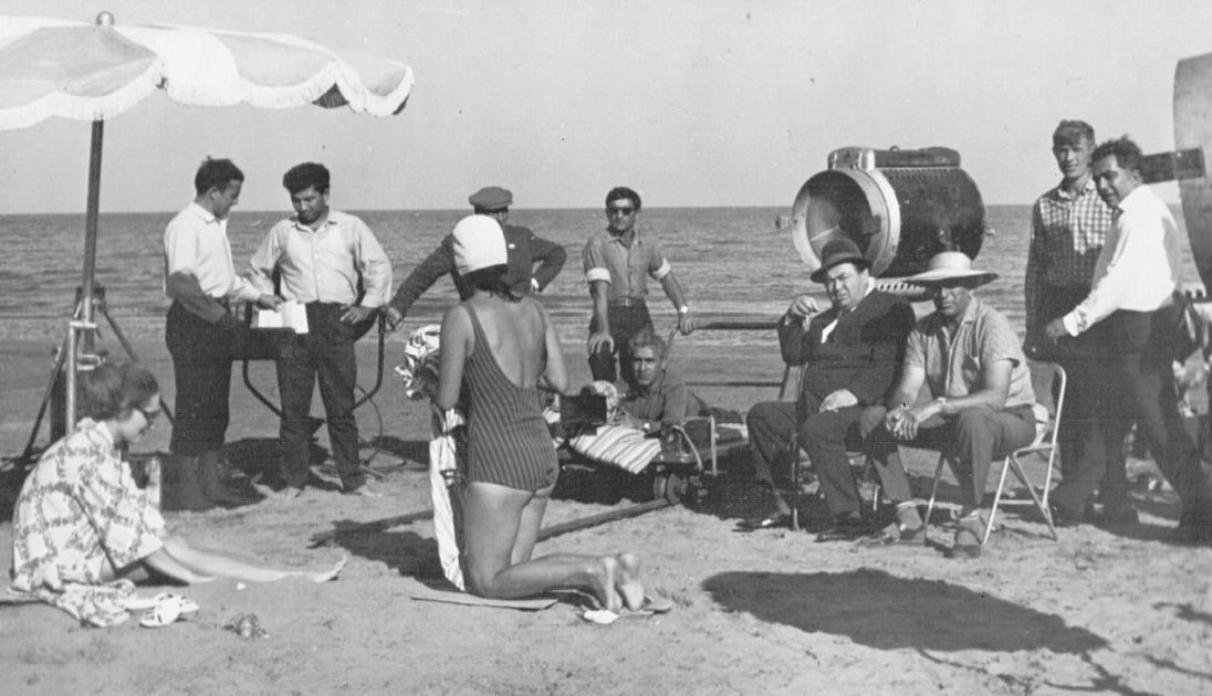 The photographs from Adil Iskandarov's from his personal archive illustrate the filming process of the movie "The Investigation Continues" (1966).