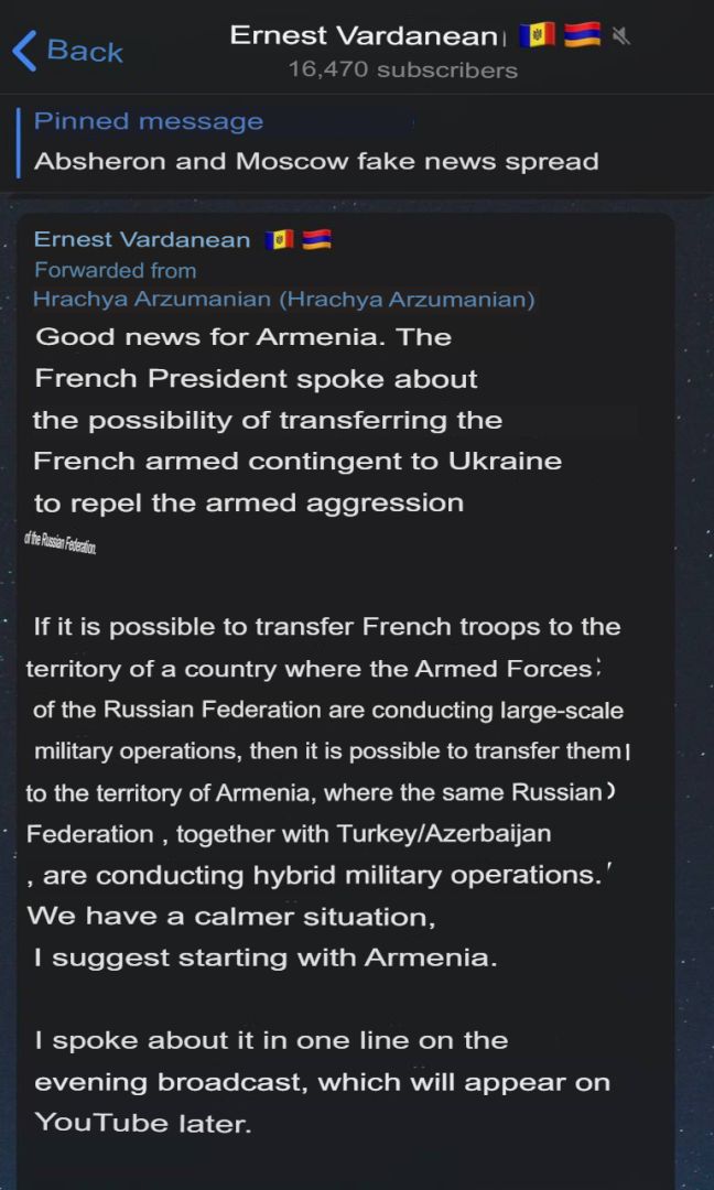 By AzernewsThe Armenian information field dreams of receiving French troops as a response to the statement of French President E. Macron on the possible dispatch of French troops to Ukraine, which caused a strong reaction among his European colleagues.