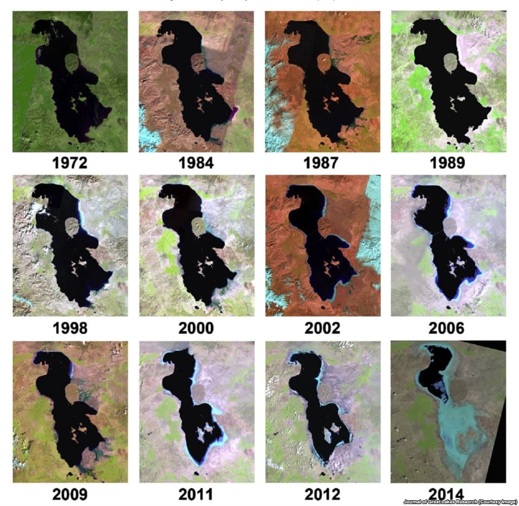 Lake Urmia, once one of the world’s largest saline lakes, has completely dried up, according to satellite images published in Iranian media.