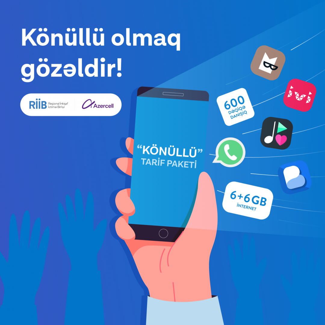 Azercell offers discount for volunteers at the initiative of RDPU “Azercell Telecom” LLC is making a special contribution to the “Year of Volunteers” announced by the President of the Republic of Azerbaijan. Thus, at the initiative of the Regional Development Public Union, Azerbaijan's leading mobile operator is offering a discount that will allow volunteers to communicate on more favorable terms and enjoy a large amount of mobile data. This offer aims to support the benevolent work of the people who are engaged in voluntary activity. The special offer provides volunteers with 600 minutes of the in-plan calls per month, plus 6GB of data traffic. Moreover, a further 6 GB of data will be provided for the use of Azercell's digital applications such as Zvuk, ivi, Bookmate, and Busuu. On top of that, by taking this offer, volunteers can benefit from free chat on social networks (WhatsApp, Facebook Messenger, Viber, Telegram, and Twitter). The monthly subscription fee for the special offer is 6.30 AZN. Simply text G9 to 7575 or dial *750*4*09#YES to join the tariff plan. This special offer has been prepared for all Azercell prepaid subscribers engaged in voluntary activities in Azerbaijan. To take advantage of this discount, you need to register on the official website of the RDPU at www.riib.az, where you can get detailed information on how to join. Volunteers can also use Azercell's "Kabinetim" app to manage their plans and stay informed about new offers. The country's leading mobile operator Azercell Telecom always supports initiatives aimed at promoting youth development and implements various projects in this direction. We believe that this offer, prepared by Azercell as a special gift for the "Year of Volunteers", will contribute to the appreciation of the volunteers and stimulate this kind of activity.