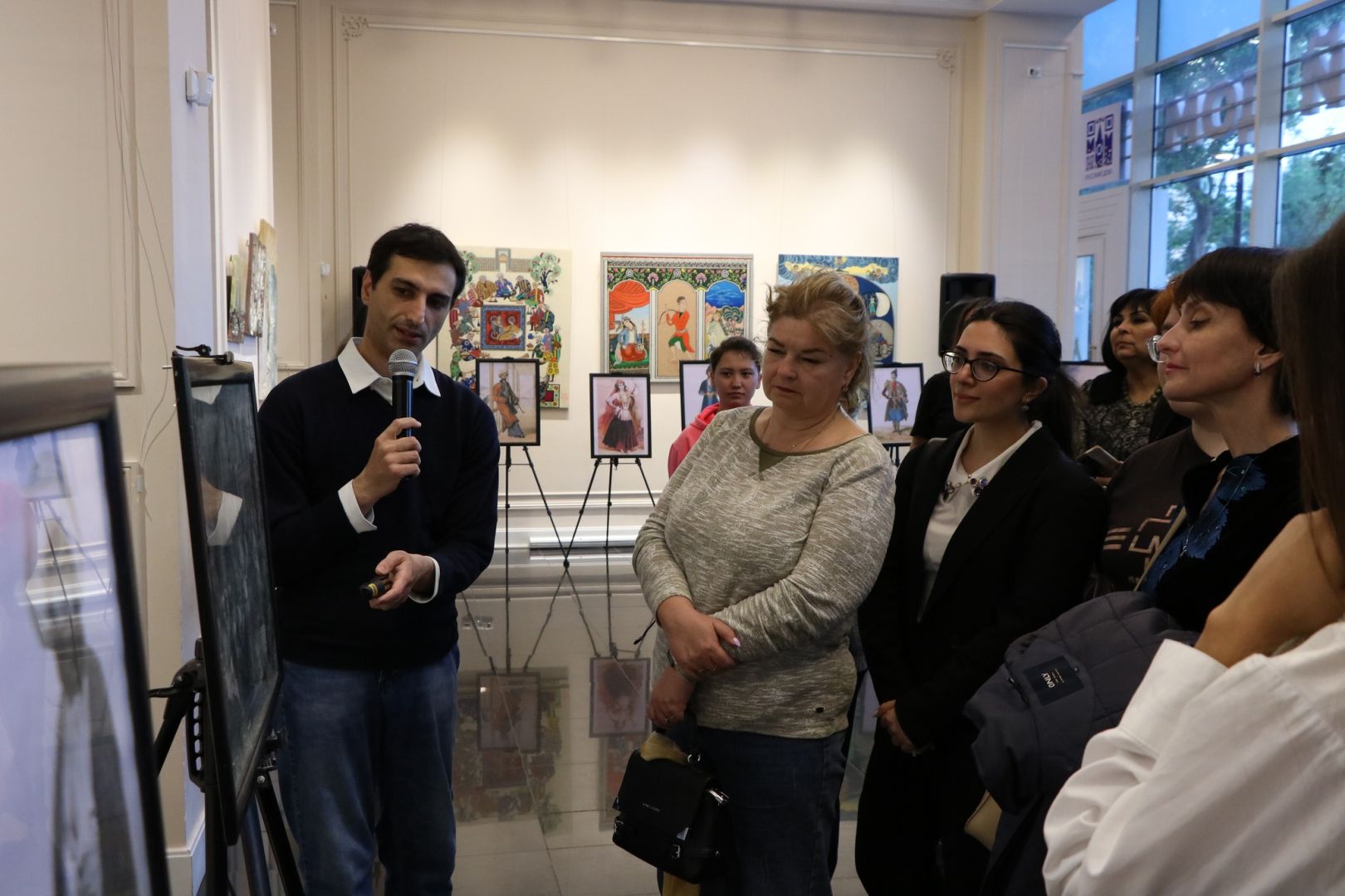 The participants of the event were captivated by Gagarin's depictions of Azerbaijani traditional attire.
