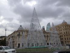 Christmas trees already appeared in the center of Baku. The 25-meter Christmas tree was installed at Fountain Square in Baku. Now, the works fix lights on the Christmas tree. Also a beautiful and modern Christmas tree was installed at the Azneft area.