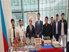 In addition, brochures depicting Azerbaijan's historical and modern cultural monuments, must-see and sightseeing places, historical sites, and national spiritual values, as well as samples of Azerbaijan national clothing and cuisine were presented at the exhibition, and visitors were treated to sweets related to Azerbaijani cuisine.