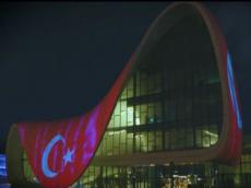 Projection of the Turkish flag was placed on the Heydar Aliyev Center’s building in Baku, Azerbaijan, Trend reports.