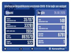 Azerbaijan registered 91 new COVID-19 recoveries in the past 24 hours, Operational Headquarters under Cabinet of Ministers reported on August 26.