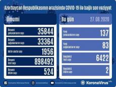 Azerbaijan registered 83 new COVID-19 recoveries in the past 24 hours, Operational Headquarters under Cabinet of Ministers reported on August 27.
