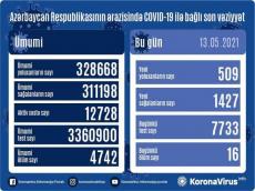 Azerbaijan registered 509 new COVID-19 cases in the past 24 hours, Operational Headquarters under Cabinet of Ministers reported on May 13.