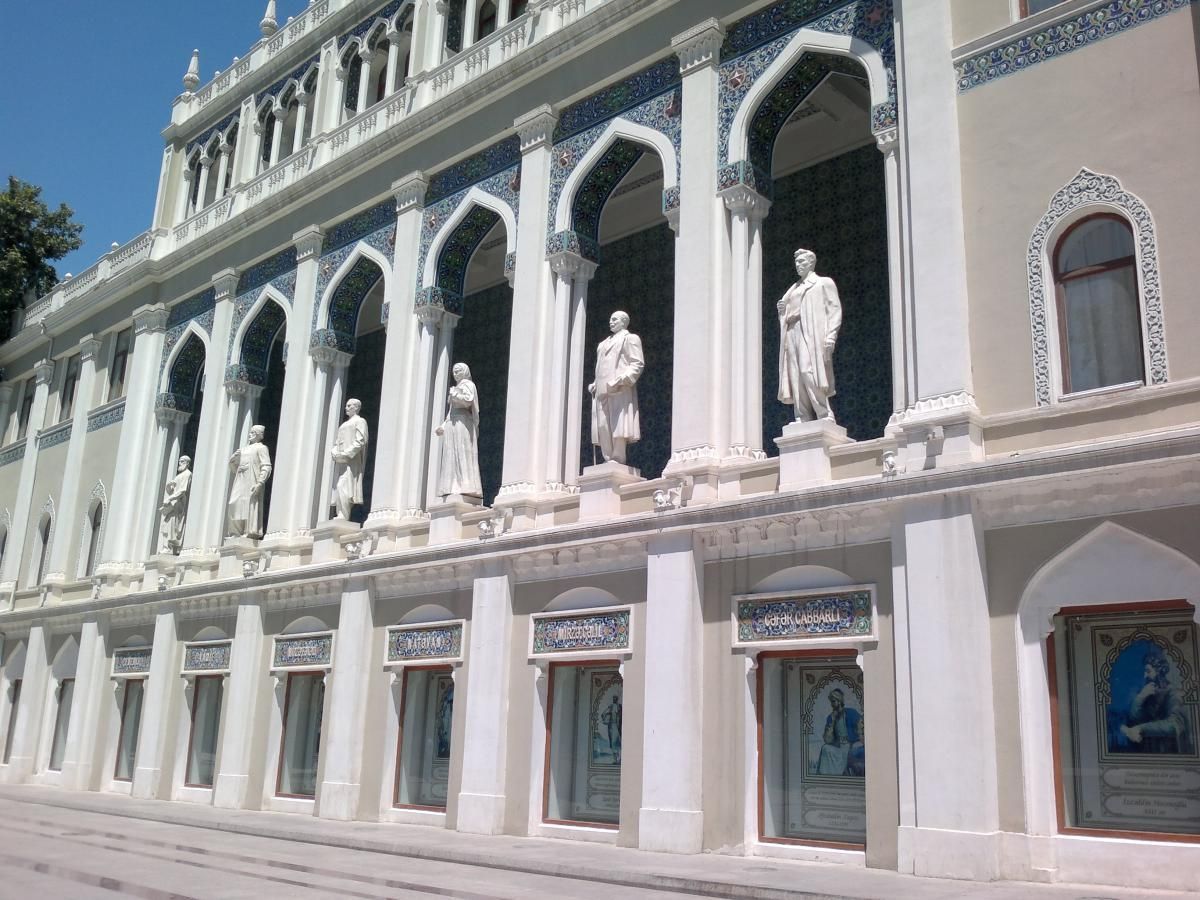 The library building is no less impressive. The facade of the building is decorated with the statues of eminent poets and writers like Nizami Ganjavi, Mahsati Ganjavi, Uzeyir Hajibayli, Shota Rustaveli, Alexander Pushkin and many others.